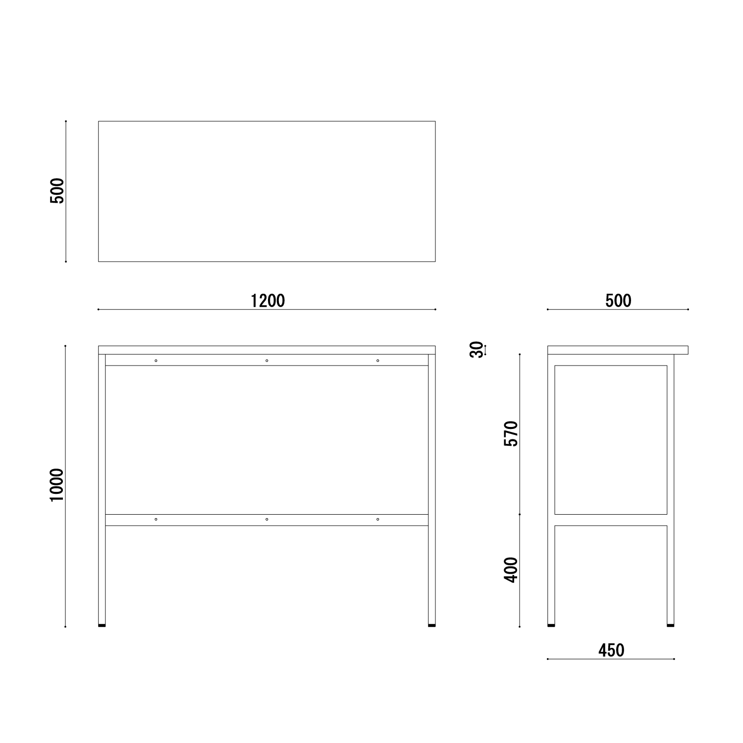 天板は幅120×奥行50cmで、パソコンを置いても前に物を置くスベースや書類を広げるスベースがあます。