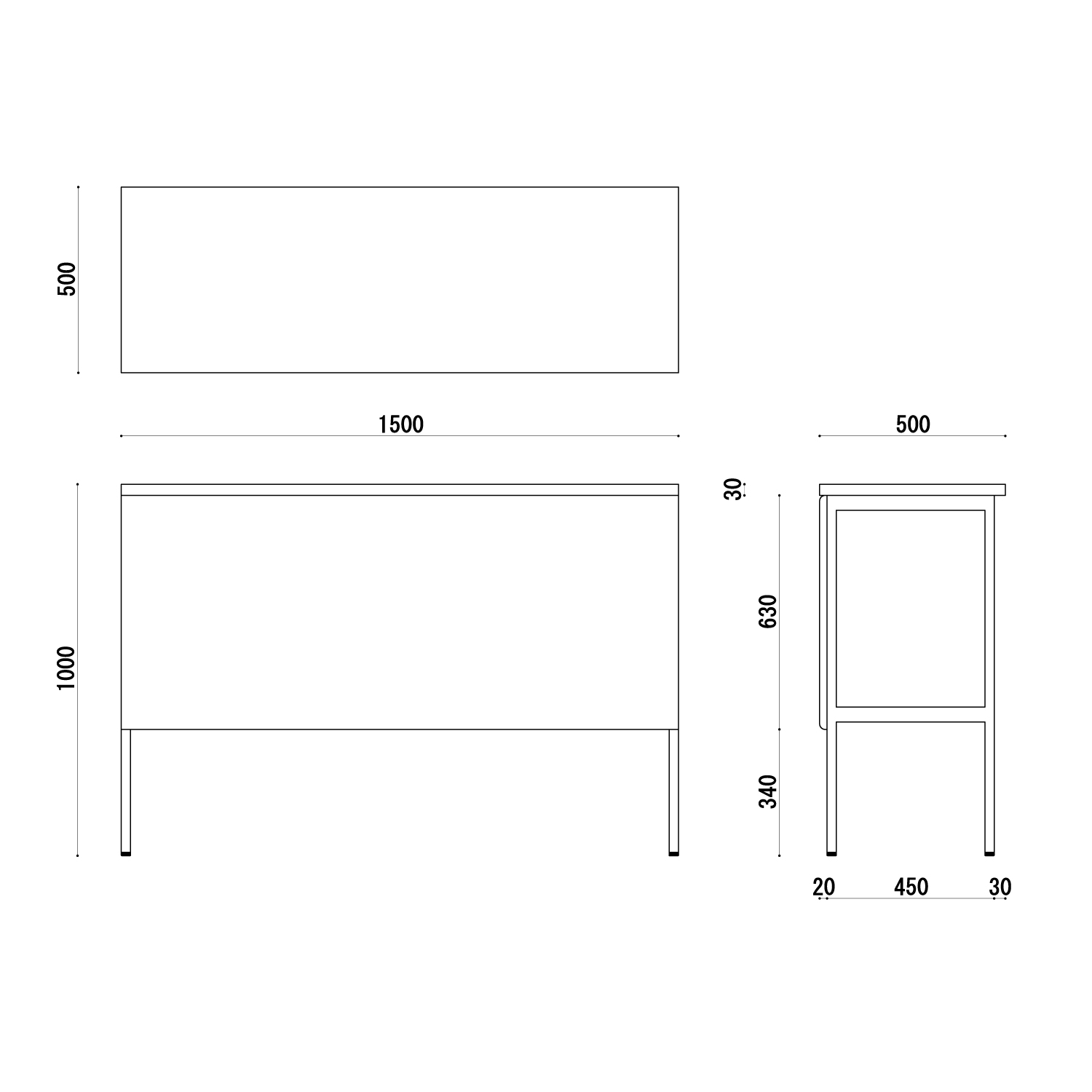 天板は幅150×奥行50cmで、パソコンを置いても前に物を置くスベースや書類を広げるスベースがあます。